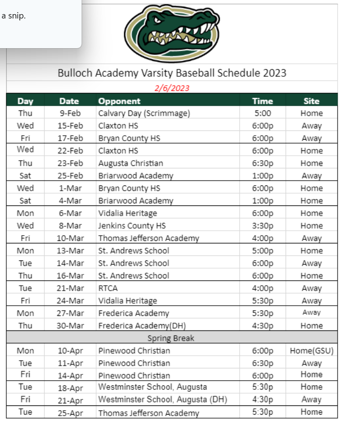 Our Gators love America’s favorite pastime sport! Baseball is offered to our students in both middle and high school in the Spring.