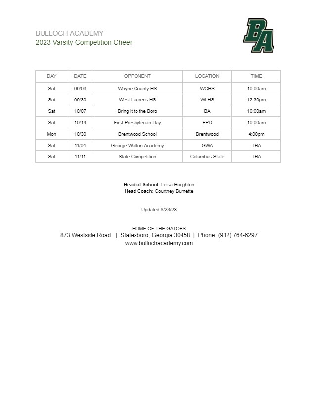 2024-2025 Bulloch Academy Competition Cheer